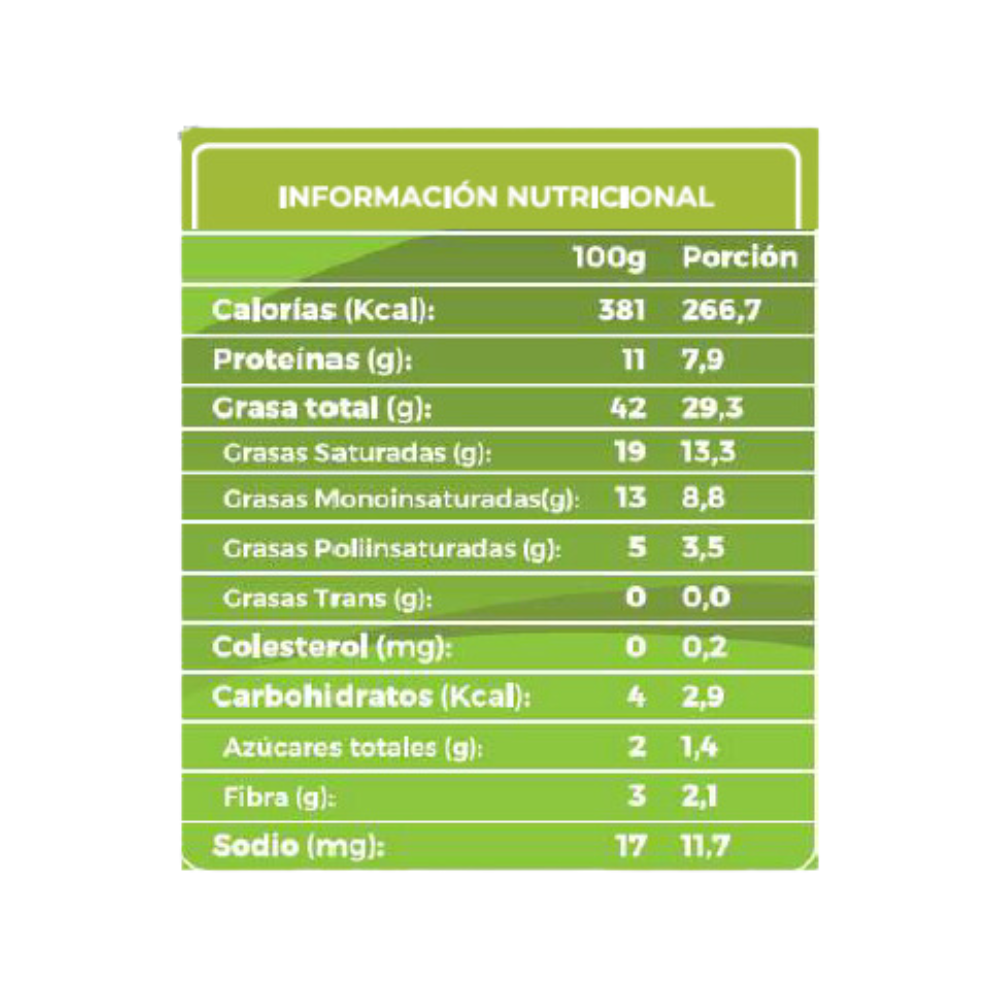 Otras características: Sin gluten, Vegano y Sin azúcar.