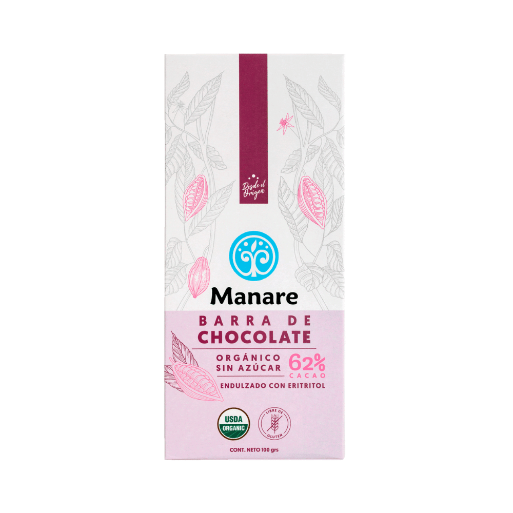 Deliciosa barra de chocolate de 62% cacao. Ideal para quienes buscan un chocolate saludable, pero de sabor menos amargo que las variedades de 70%, 85% y 100% cacao.