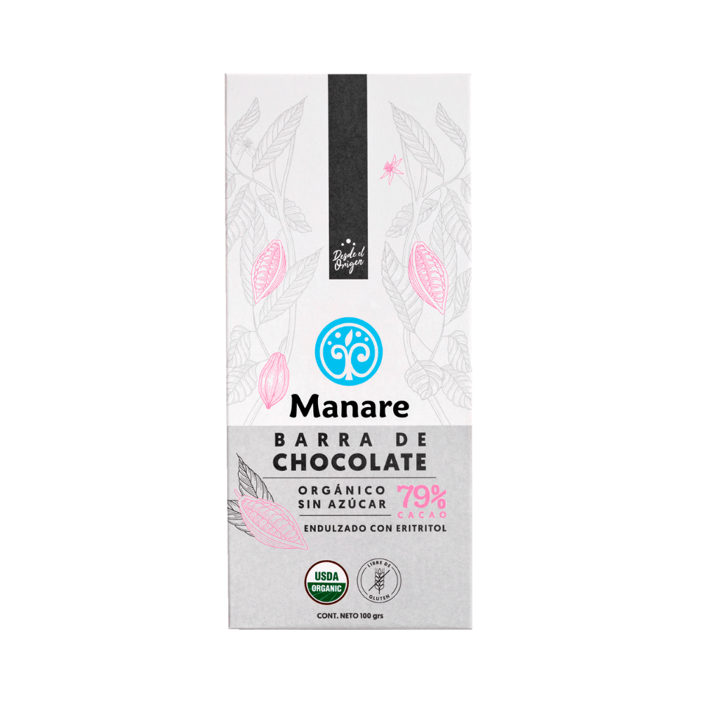 Ingredientes: Pasta de cacao, eritritol, manteca de cacao, inulina, lecitina de girasol. Ingredientes provenientes de agricultura orgánica.