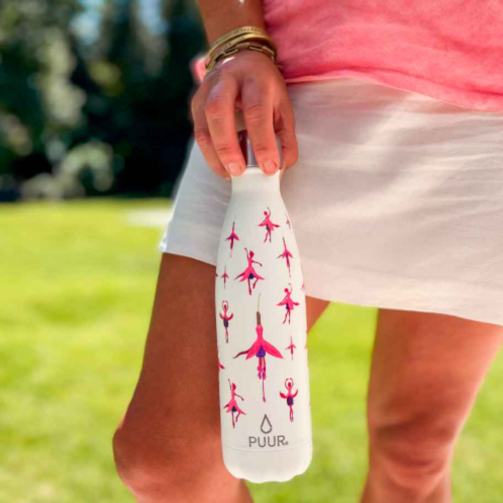 Es 100% reutilizable, libre de BPA y funcional. Además esta colección es muy especial porque está producida de acero inoxidable reciclado en un 90%.