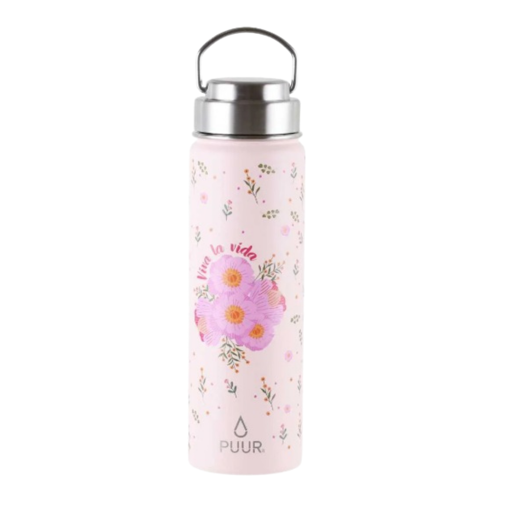 Formato: Botella térmica de triple pared de acero inoxidable 304 (grado alimento), más una capa de cobre en su interior que mantiene la temperatura de los líquidos hasta 24 horas fríos y 12 horas calientes. Libres de BPA, no se condensa y reutilizable.