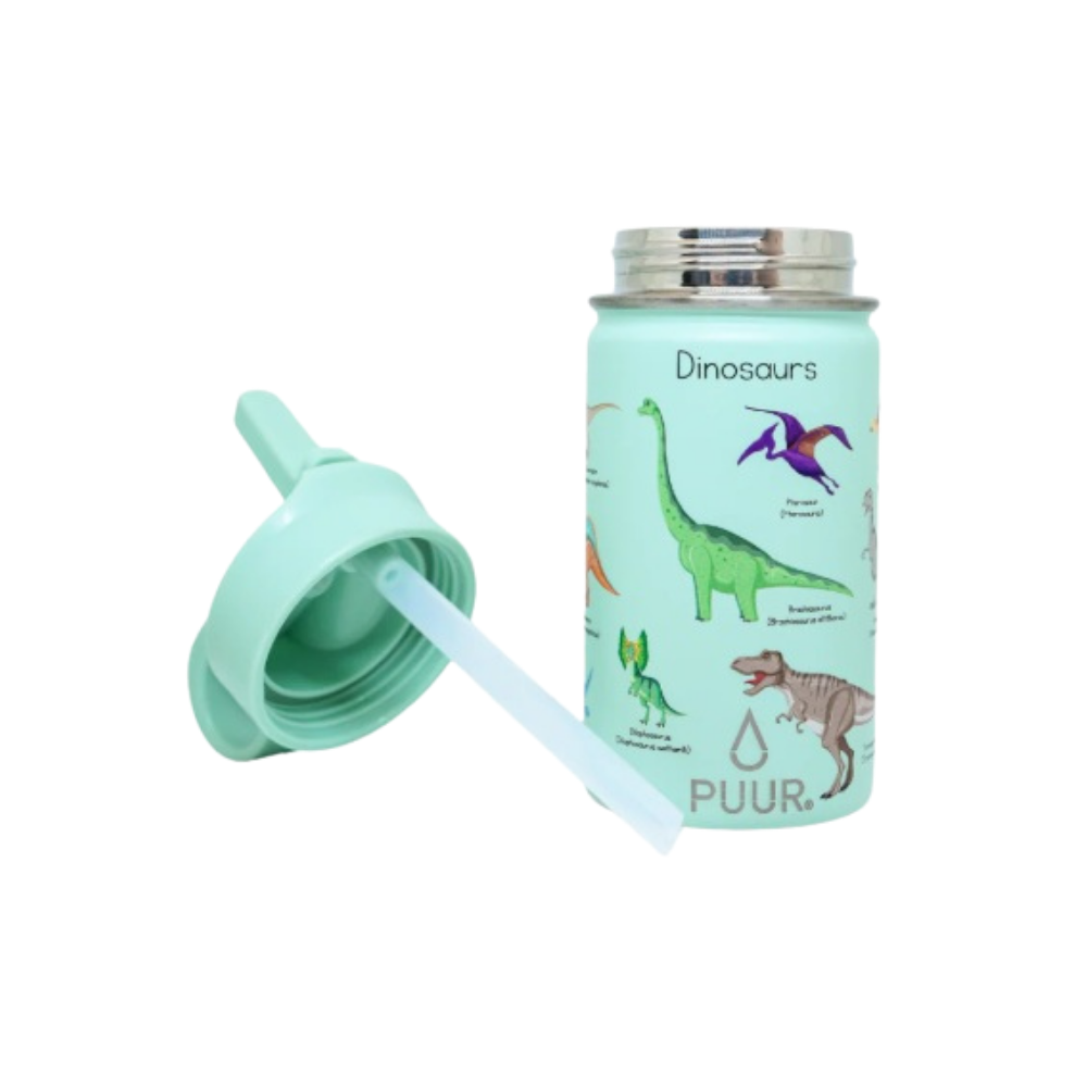 Con ilustraciones de dinosaurios en tonos verdes y pasteles. Un diseño entretenido, colorido y lleno de aventura, perfecto para los más pequeños y sus días activos.