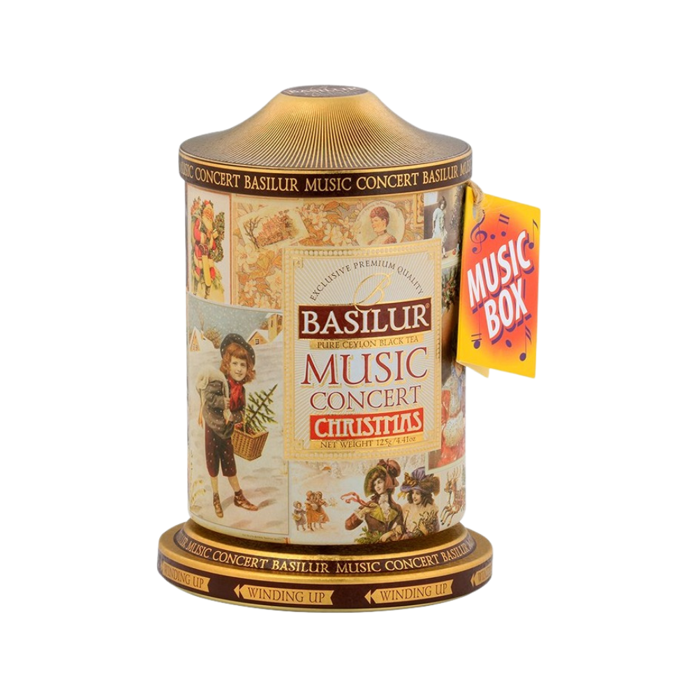 Basilur concierto de navidad es un té exclusivo que captura los sabores de la temporada con un exquisita mezcla de té negro puro de Ceilán. Disfrute de la relajación del invierno y el calor de una taza de té del carrusel de música con un diseño especial y único.