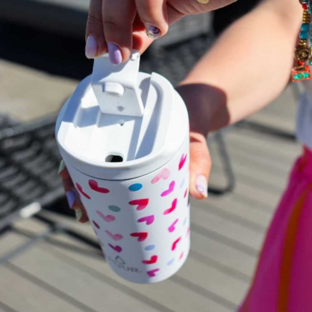 El Mug Be Mine 470 ml encanta con su diseño de corazones en tonos rosados, lleno de alegría y dulzura, ideal para acompañarte con amor en cada sorbo.