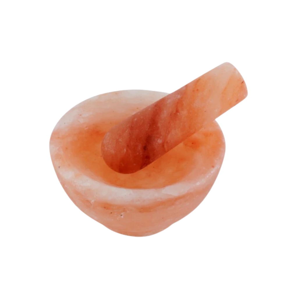 Hecho de cristales de sal rosada del Himalaya tallados a mano, es una herramienta única y natural para moler hierbas, especias y preparar salsas caseras con un toque especial. Cada pieza es elaborada artesanalmente a partir de bloques de sal extraídos de las minas del Himalaya, lo que le da no solo belleza, sino también funcionalidad.