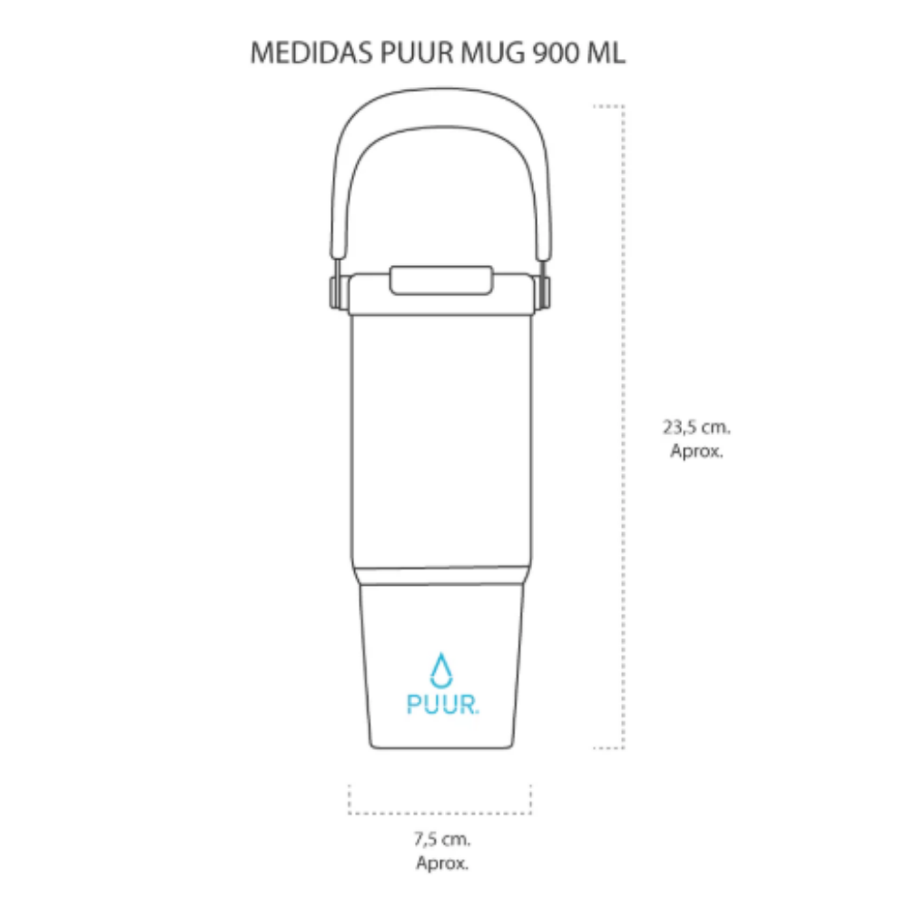 Cuenta con un mango incorporado haciendo que el agarre sea muy cómodo y fácil de transportar. La tapa es de polipropileno hermética (antiderrame) y rosca para facilitar la apertura, además, cuenta con una bombilla incorporada y un clip para beber sin esfuerzo y de la forma que prefieras.