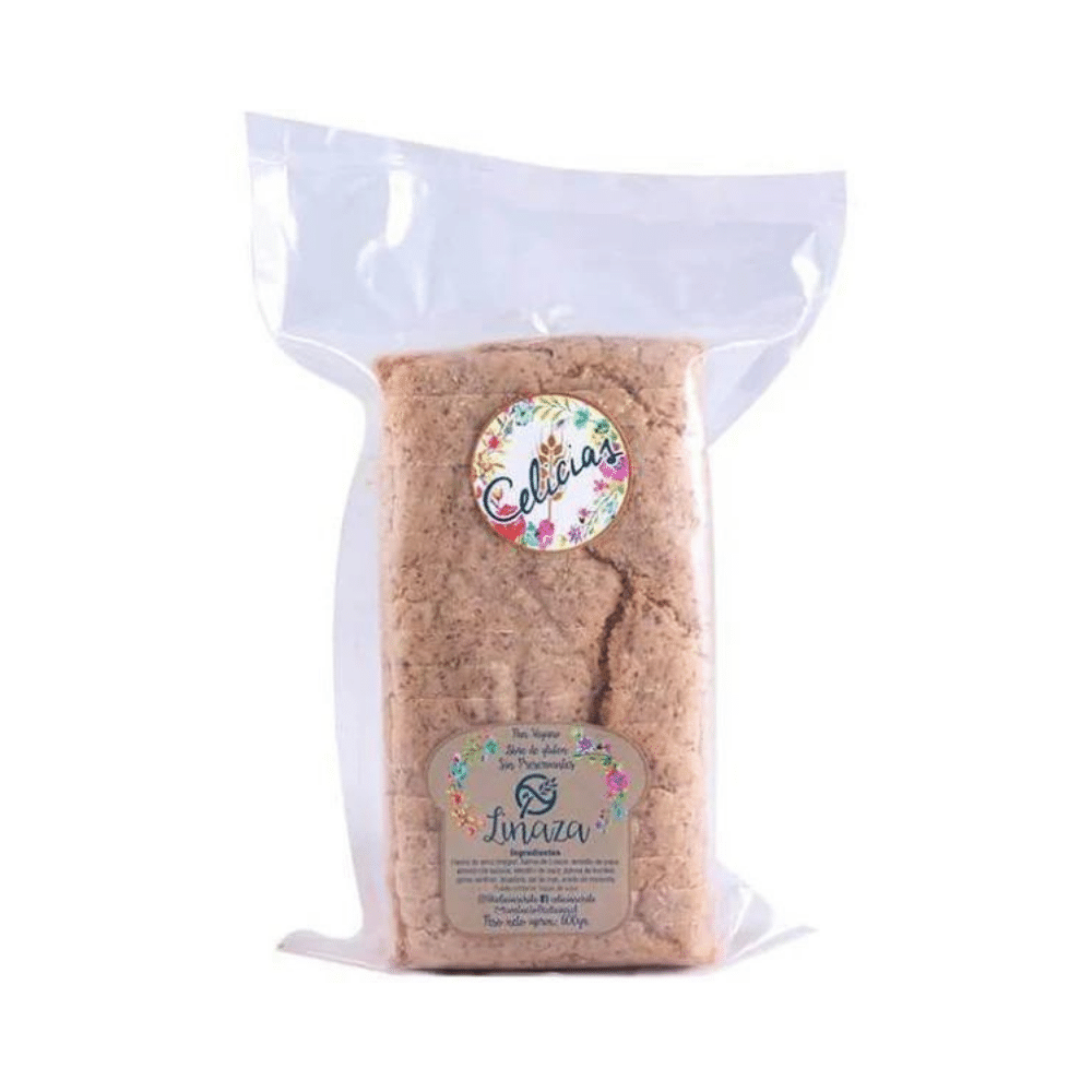 Elaborado con mezclas de harinas libres de gluten como arroz integral, hojuelas de avena, almidón de mandioca, de papa o maíz. Sin preservantes.