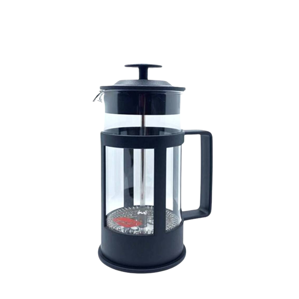 Formato: Cafetera prensa francesa de vidrio borosicalato y embolo de acero inoxidable con capacidad para 3 tazas expresso, en color negro o blanco.