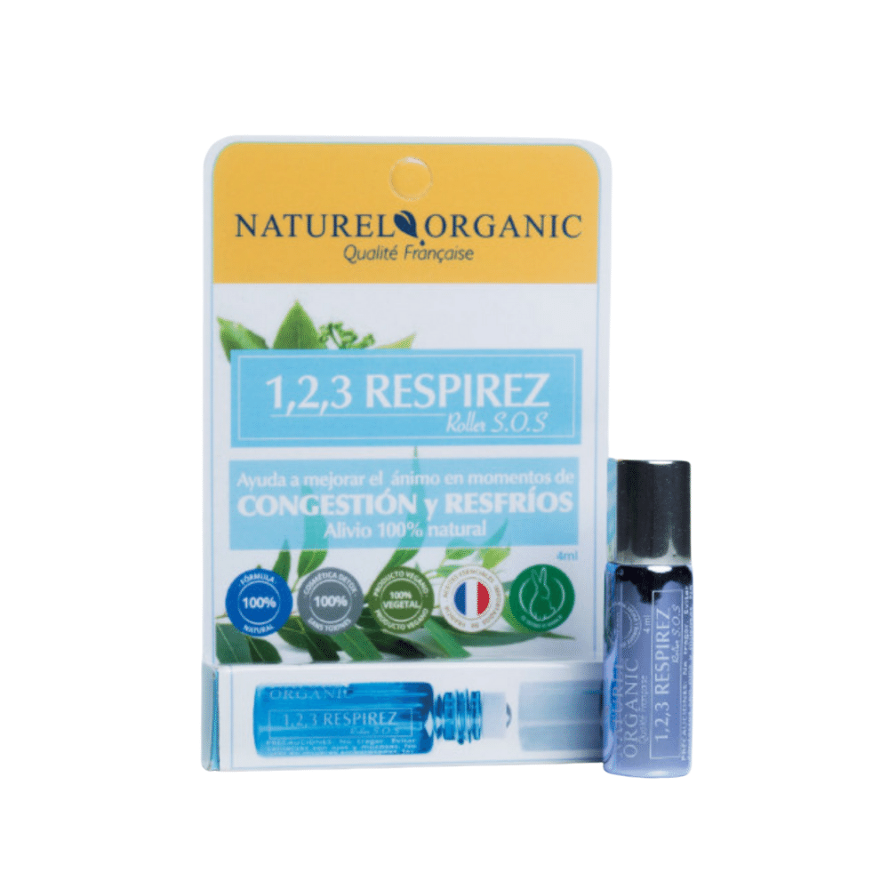 Respira el aire fresco con el roller 123 Respirez, su fresca fragancia aromática compuesta por aceites esenciales de Árbol del te (Tea Tree), Ravintsara, Eucalipto Radiata y Romero qt cineol, en una base de aceite de caléndula orgánica, ayudará a levantar el ánimo en momentos de congestión y resfrío.